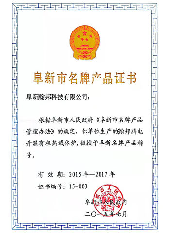 阜新市名牌產品證書